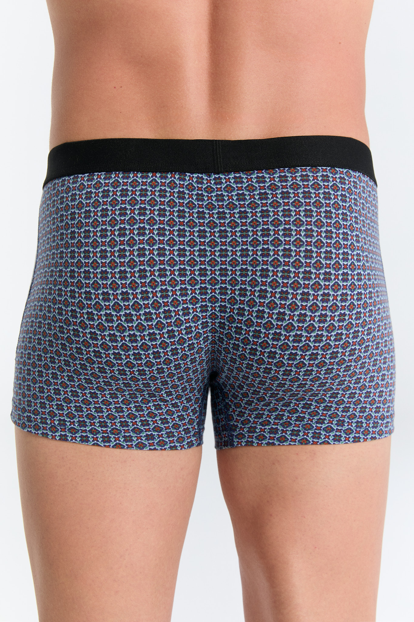 Een boxershort met een beetje meer, dat is deze bio boxer van Albero Natur. De samenstelling is zoals je van dit duurzamere kledingmerk gewend bent: biologisch katoen met een beetje elasthane. Leuk is het fijne printje. In blauw, lichtblauw, rood en groen zie je een abstract bloemenmotiefje. Het elastiek is zwart. Deze boxer sluit goed aan en zit comfortabel. Dit model is in meerdere kleuren in ons assortiment.