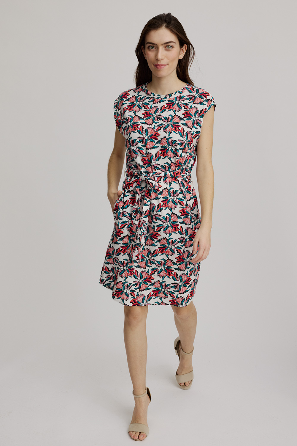 Jurk EcoVero, bloemenprint roze/rood – TRANQUILLO