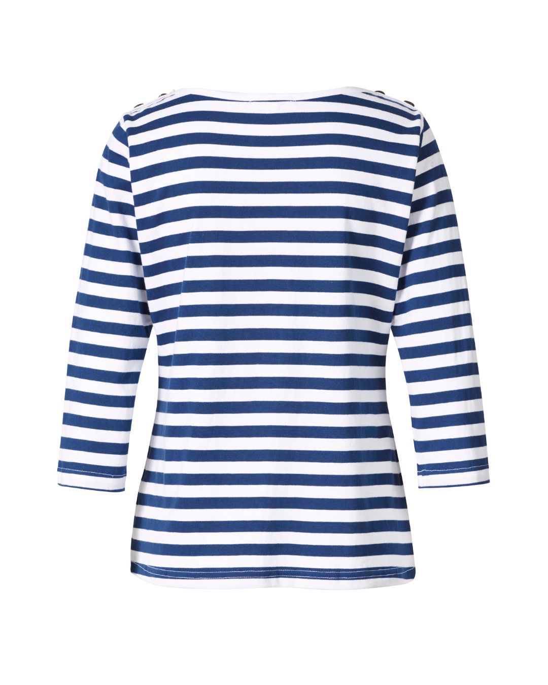 Damesshirt in biologisch katoen zonder toevoeging van polyester, wol of elasthane. De foto met model is hetzelfde shirt in een andere kleur en dient als aan-voorbeeld.