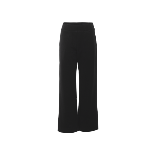 Wijdere broek in zacht biologisch katoen. Damesbroek Tamina heeft geen rits- of knoopsluiting, maar een brede elastische tailleband. Hij heeft twee schuine steekzakjes vooraan en een verborgen zak achteraan. De lengte is tot op de schoen. De kleur van deze broek is zwart. De stof tekent niet door en heeft een mooie dikte, wat hem ideaal maakt voor het tussenseizoen.