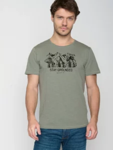 T-shirt bio katoen, stay grounded olijfgroen – GREENBOMB
